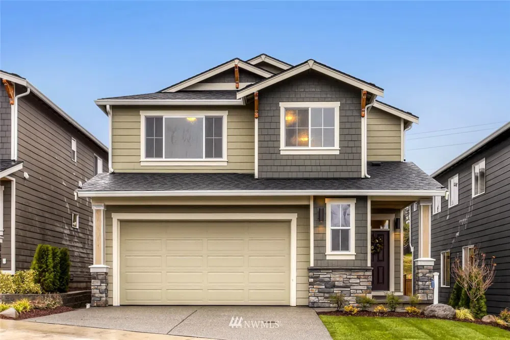 $3500 Buyer Bonus! This Aspen plan is on a quiet street withRainier views! Located in the Bridges master plan community that features walking trails surrounded by a nature reserve and neighborhood parks. Modern great room concept with big picture windows, gas fireplace and covered patio. Kitchen features walk-in pantry, granite countertops, large island, SS appliances & gas cooking. Spacious Master Suite with walk-in closet & bonus room upstairs. Nest Thermostat and many more great features!